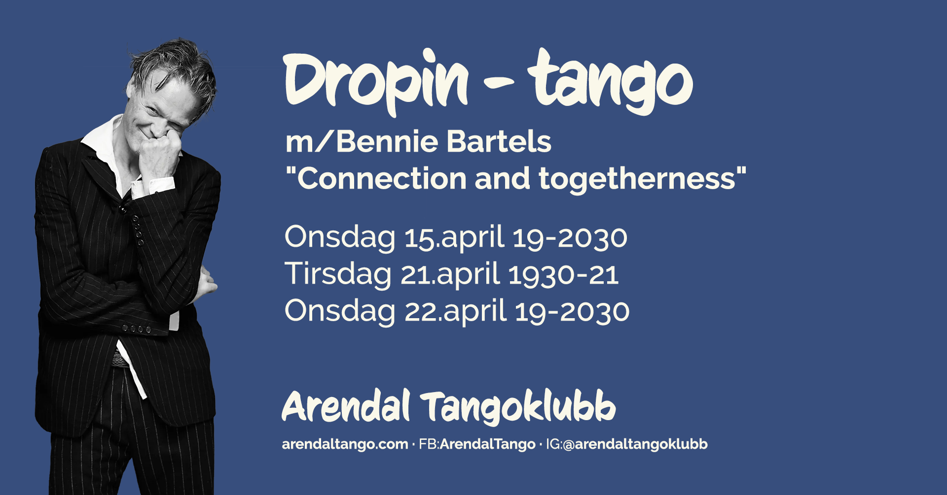 Vi arrangerer også dropinkurs ondag 15/4 kl. 1900-2030, tirsdag 21/4 kl. 1930-2100 og onsdag 22/4 kl. 19-2030 med tema «Connection and togetherness» . Dropinkursene krever ikke påmelding, men de inngår i Full kurspakke med og uten Tapas og Tango. Dropinkurs er åpent for alle som har gått minimum ett begynnerkurs og danset litt.